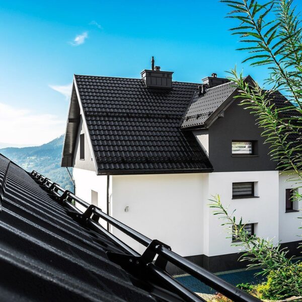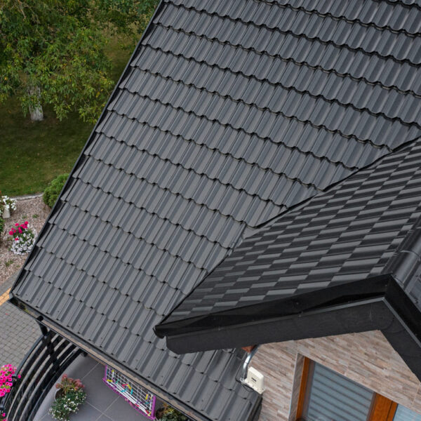 A GERMAN SIMETRIC cserepes lemez 0,45 - 0,60 mm vastagságú horganyzott acéllemezből profilírozott cserép, fényes vagy matt festékbevonattal gyártjuk.