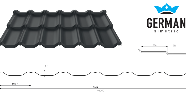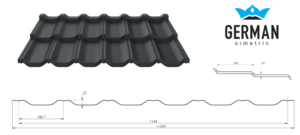 Ez a cserepes lemez a legelterjedtebb, hasonlít a hagyományos cserepekhez, és főként lakóépületeknél használatos. A GERMAN SIMETRIC cserepes lemezt sokféle színárnyalatban gyártjuk.