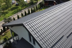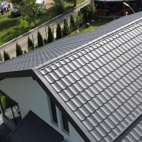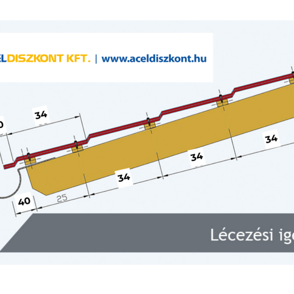 A cserepes lemez tetőlemezt úgy ajánlott felerősíteni a tetőlécre, hogy a cserepes lemez vége 10 cm hosszan belógjon a csatorna felé.