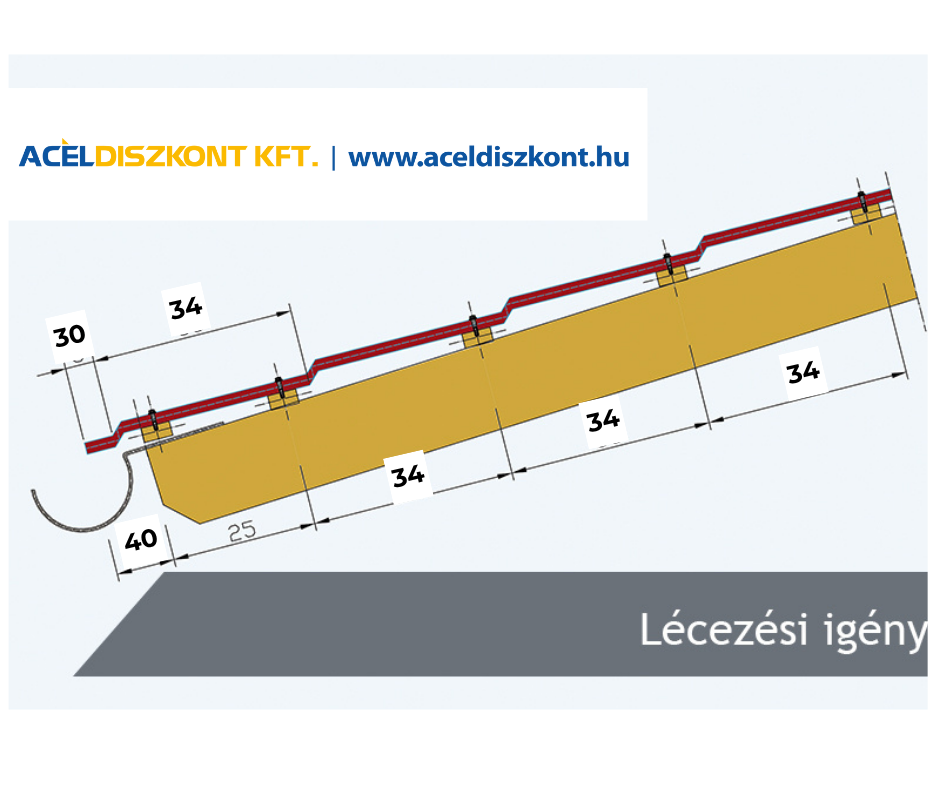 A cserepes lemez tetőlemezt úgy ajánlott felerősíteni a tetőlécre, hogy a cserepes lemez vége 10 cm hosszan belógjon a csatorna felé.