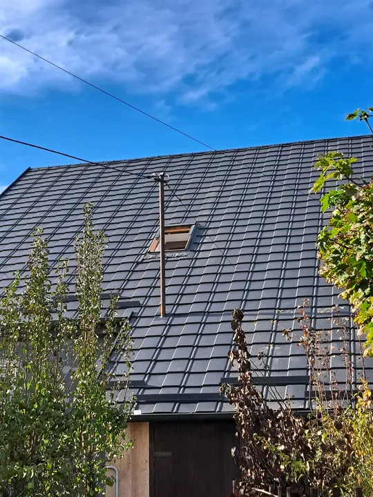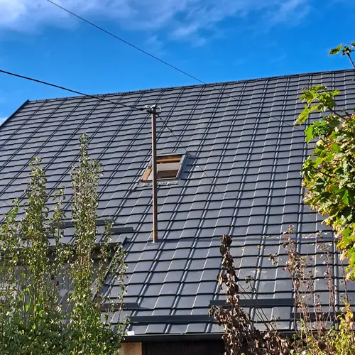 Modern, minimalista megjelenésű fém tetőcserép. Esztétikus, letisztult forma lakóépületekhez. Akár 30 év garanciával (GrandeMat bevonat).