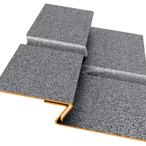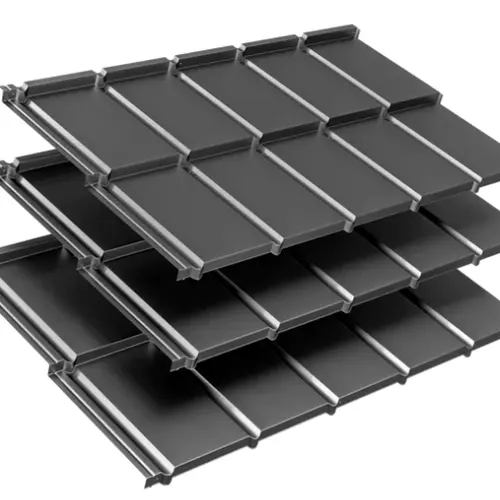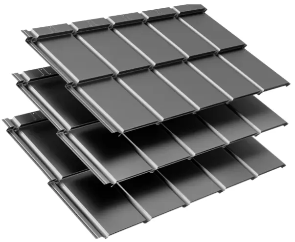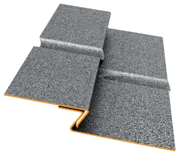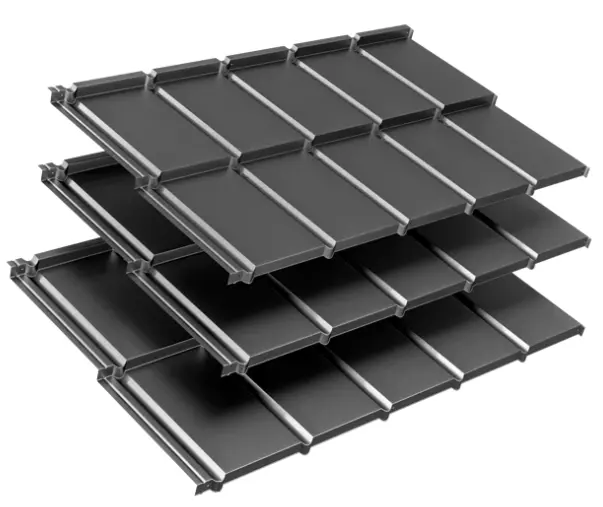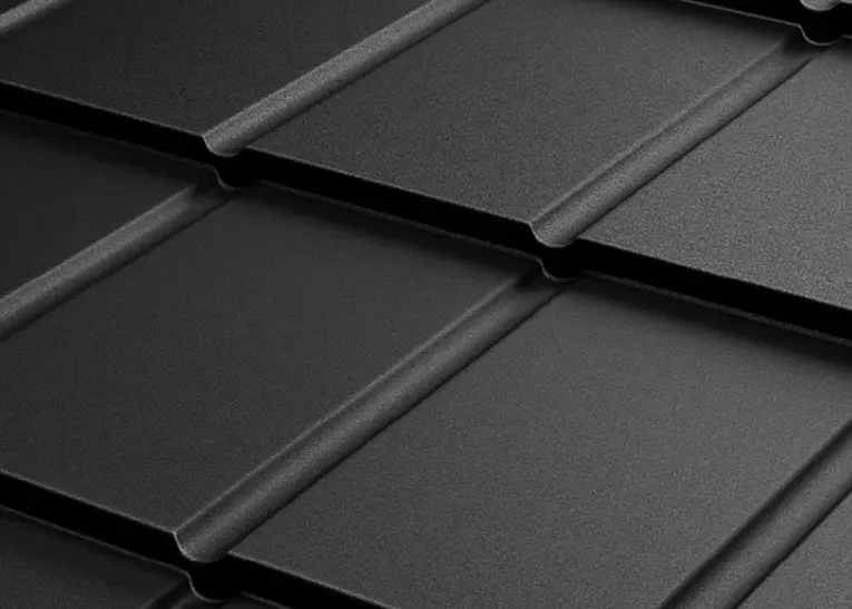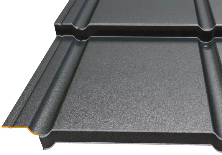 - „Z” típusú bordázat: A modulok közötti speciális profilozás mély árnyékot vet, ami dinamikus, karakteres megjelenést ad a tetőnek, elrejtve a vízszintes illesztéseket.