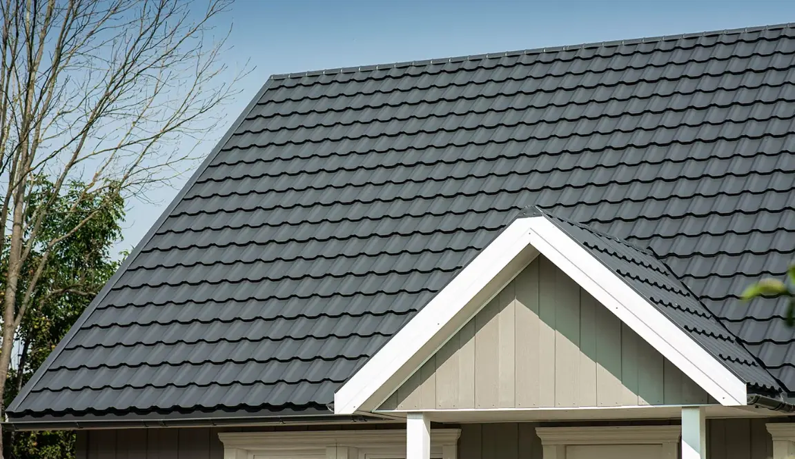 Prémium moduláris fém tetőcserép rejtett rögzítéssel. A Z-profilú bordázat és a láthatatlan csavarok letisztult, elegáns tetőt eredményeznek. Akár 55 év garancia.