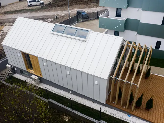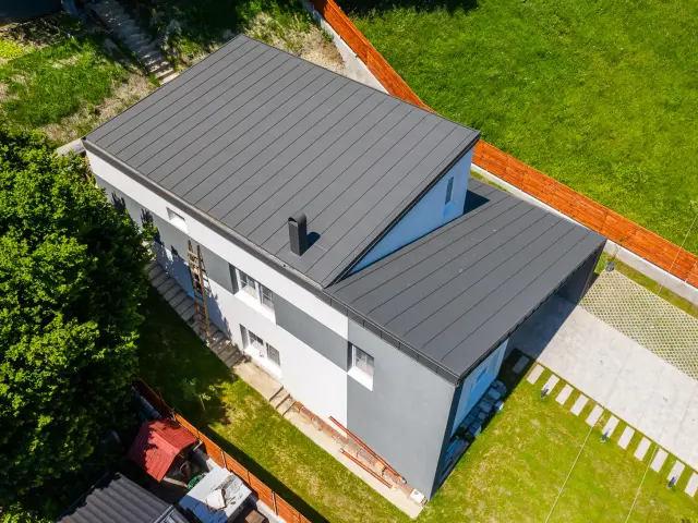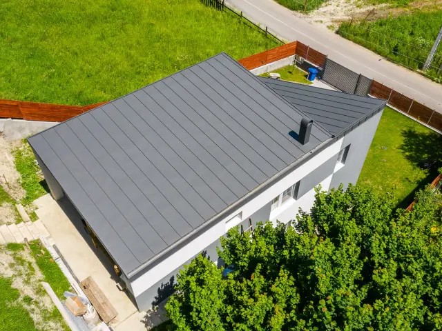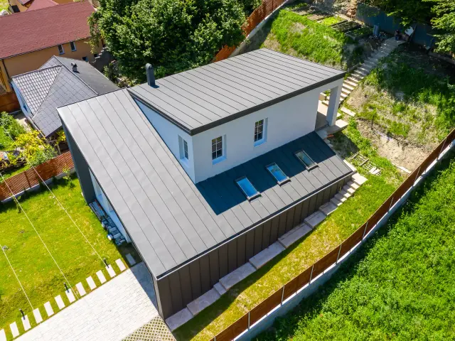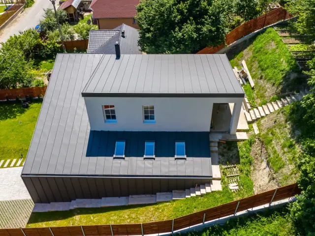 - Kiemelkedő vízzárás: A korcolt illesztéseknek köszönhetően a tető kiválóan ellenáll a csapadéknak és a hónak. Ideális kis hajlásszögű tetőkhöz (7-10°) is, ahol a hagyományos cserepek már nem alkalmazhatók.