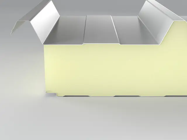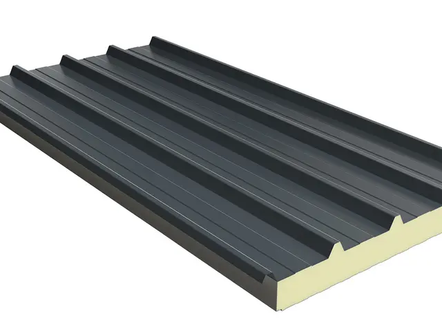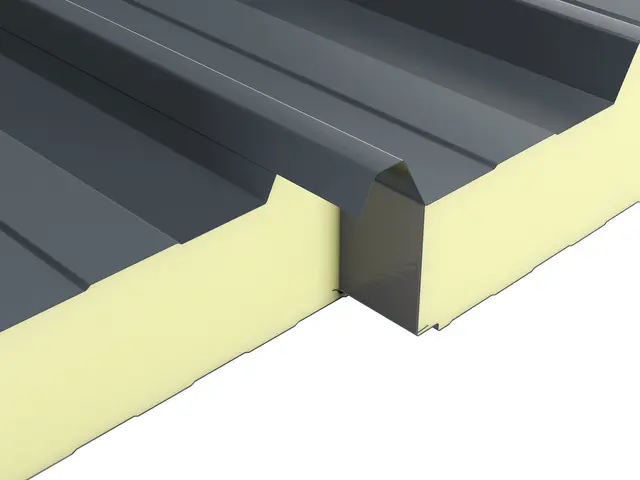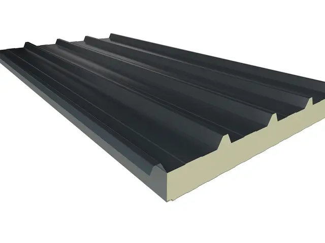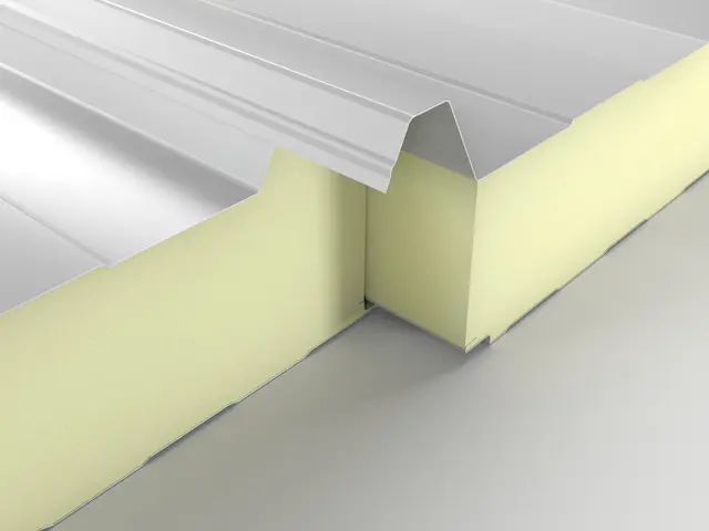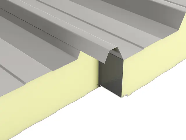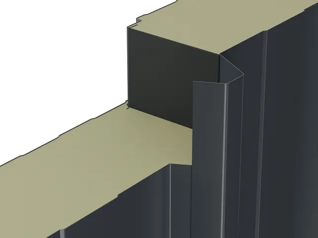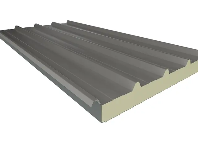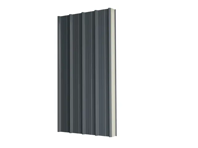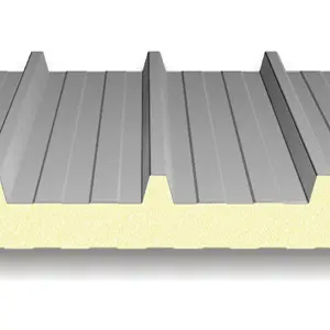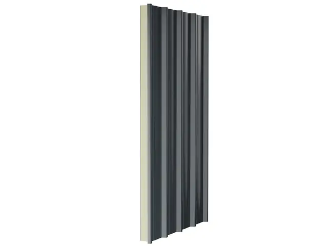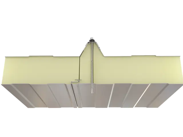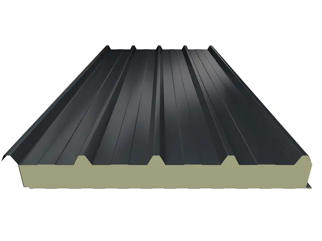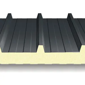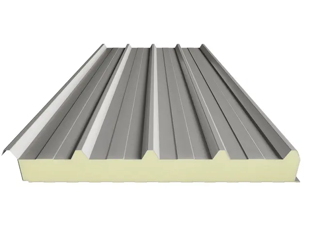 Kiemelt teherbírású, 5 bordás hőszigetelt tetőpanel PUR vagy PIR hab töltettel. Extra mechanikai stabilitás ipari csarnokokhoz és nagy fesztávú tetőkhöz.