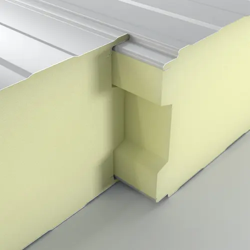 Speciális hűtőházi szendvicspanel légtömör "frigo" csatlakozással. 150-200 mm vastagságban, PUR vagy PIR maggal hűtőkamrákhoz és fagyasztókhoz.