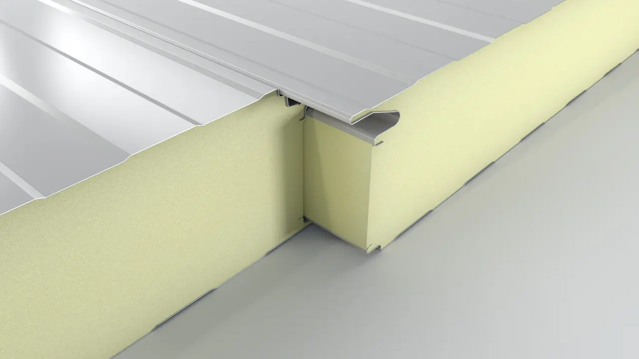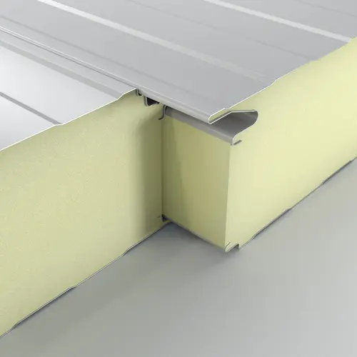 Prémium megjelenésű, rejtett rögzítésű falpanel választható PUR vagy PIR habbal. Esztétikus, csavarmentes homlokzat ipari és kereskedelmi épületekhez.
