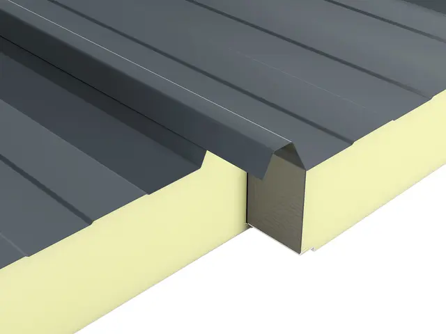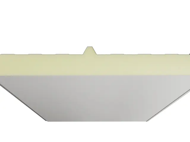 Gazdaságos, 3 bordás hőszigetelt tetőpanel PUR hab töltettel. Ideális ipari, mezőgazdasági és élelmiszeripari épületek tetőfedésére 7% lejtés felett.