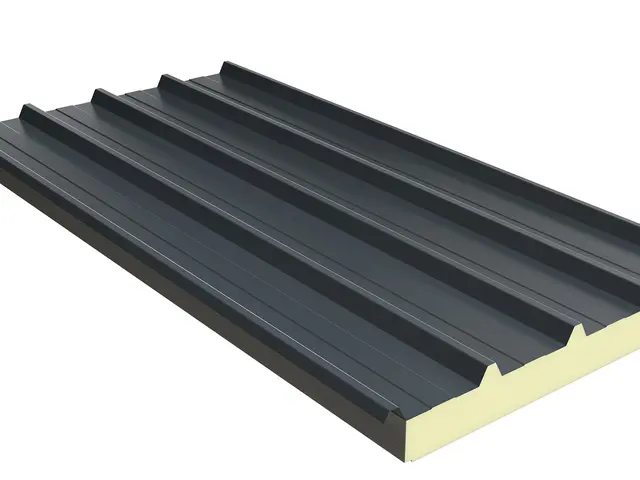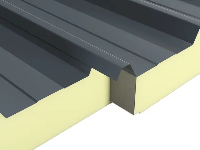 Kiemelt teherbírású, 5 bordás hőszigetelt tetőpanel választható PUR vagy PIR habbal. Extra mechanikai stabilitás ipari és mezőgazdasági csarnokokhoz.