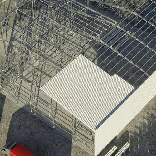- Előtetők és szerkezeti burkolatok nagyméretű épületeknél